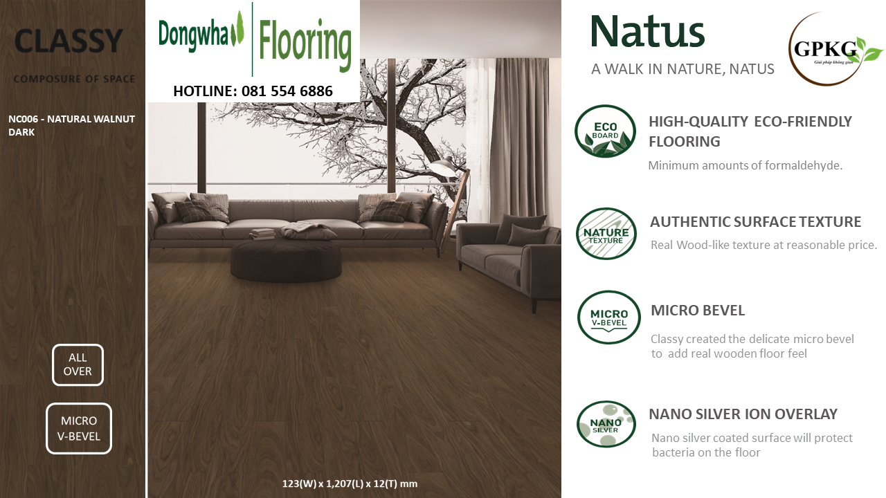 DONGWHA NATUS LAMINATE FLOORING - MODEL: NC006 - NATURAL WALNUT DARK
