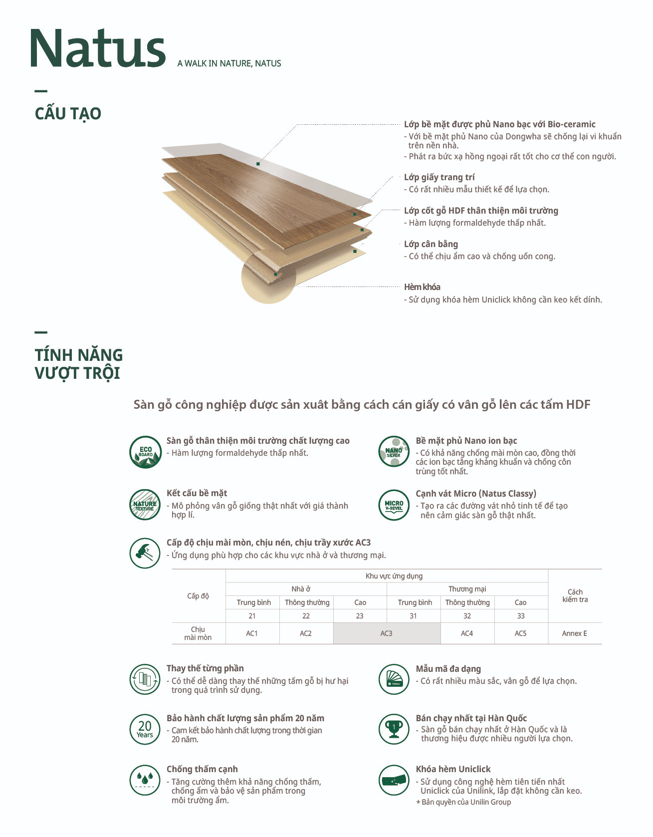 Với khả năng chịu mài mòn, chịu nén và chịu trầy xước ở cấp độ trung bình AC3, mẫu sàn gỗ công nghiệp Hàn Quốc này phù hợp với cả không gian gia đình đông người và không gian kinh doanh có mật độ đi lại vừa phải như showroom trưng bày,…