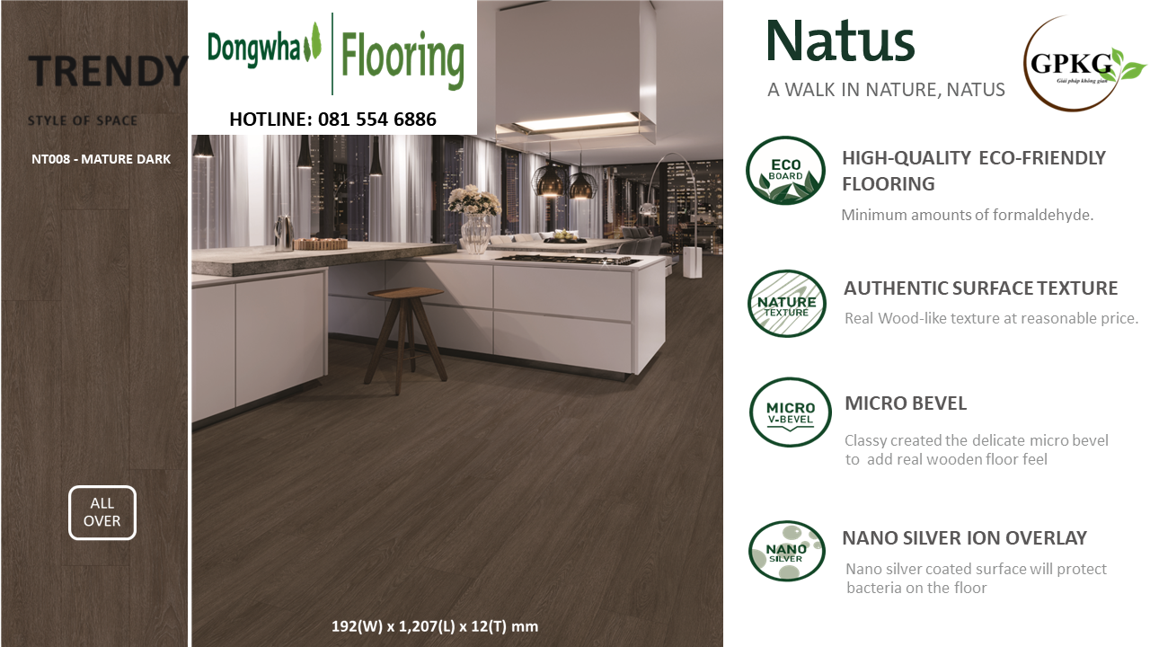 DONGWHA NATUS LAMINATE FLOORING - MODEL: NT008 - MATURE DARK