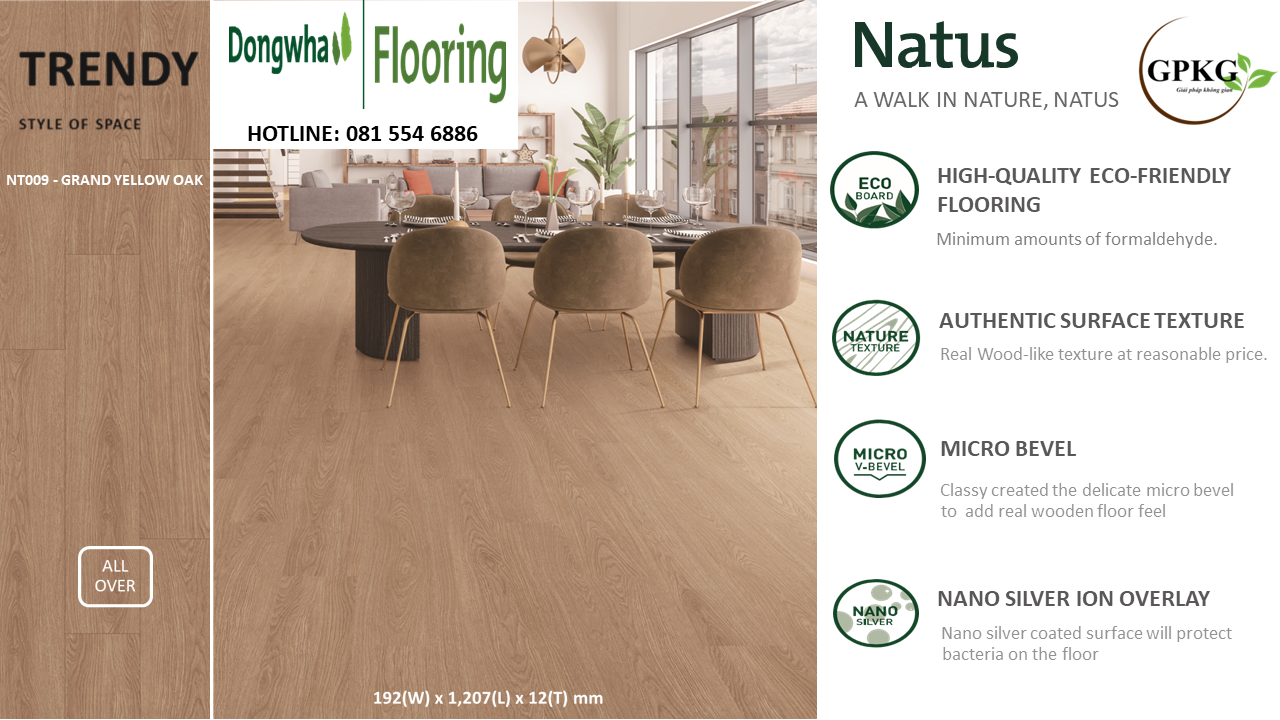 DONGWHA NATUS LAMINATE FLOORING - MODEL: NT009 - GRAND YELLOW OAK