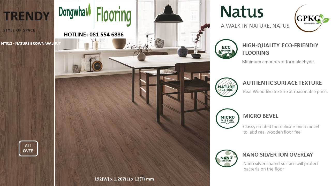 DONGWHA NATUS LAMINATE FLOORING - MODEL: NT012 - NATURE BROWN WALNUT