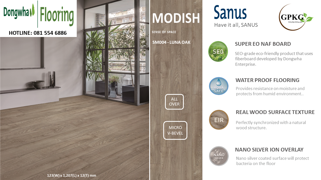 DONGWHA SANUS LAMINATE FLOORING - MODEL: SM004 - LUNA OAK