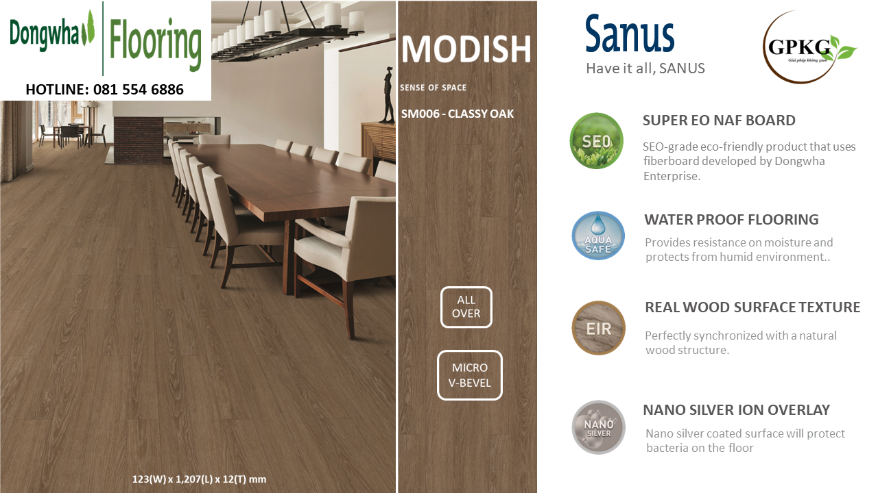 DONGWHA SANUS LAMINATE FLOORING - MODEL: SM006 - CLASSY OAK