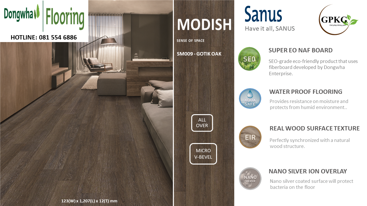 DONGWHA SANUS LAMINATE FLOORING - MODEL: SM009 - GOTIK OAK